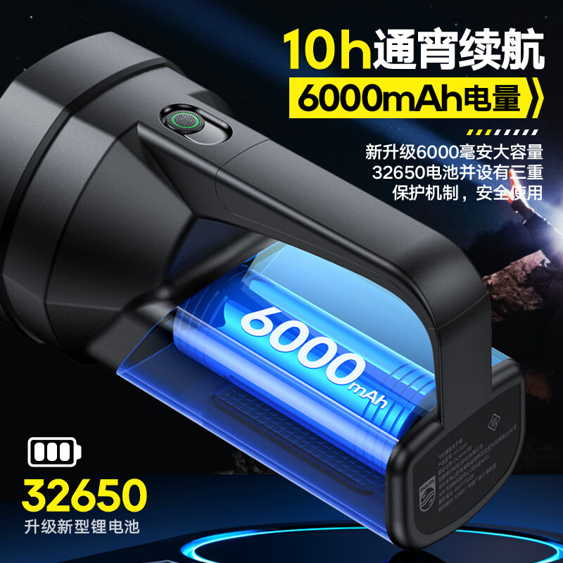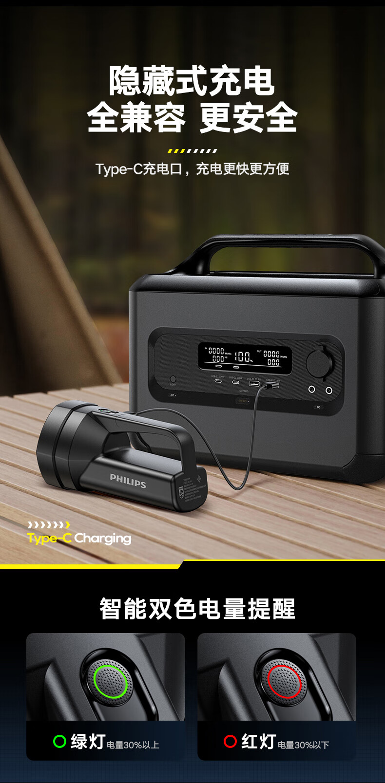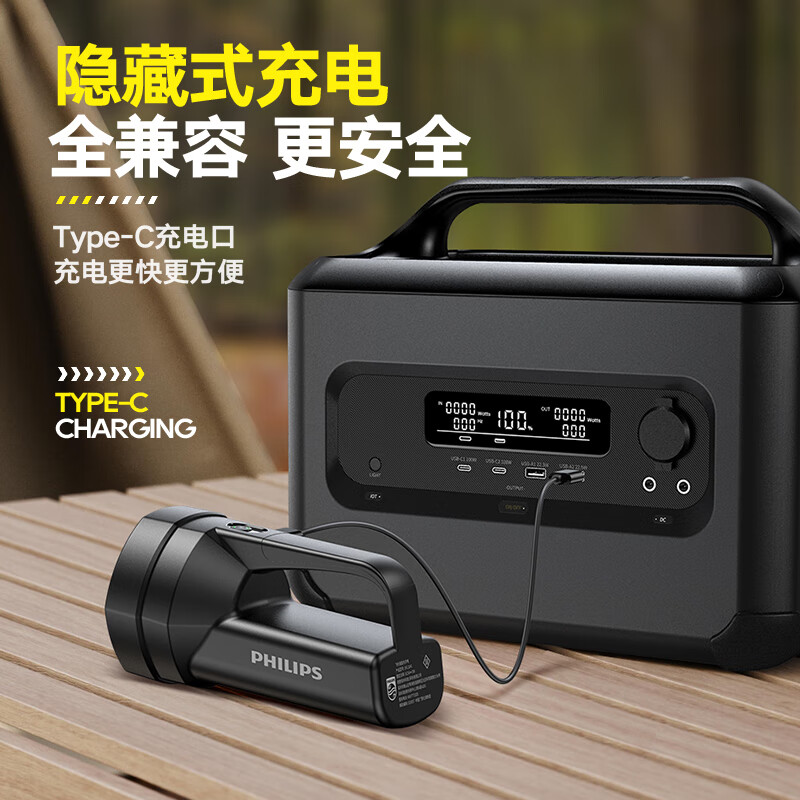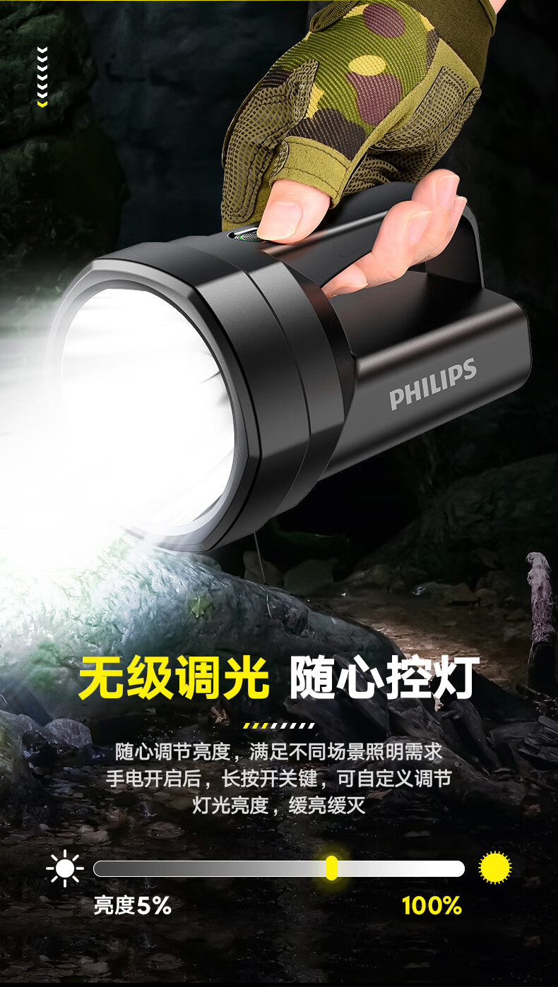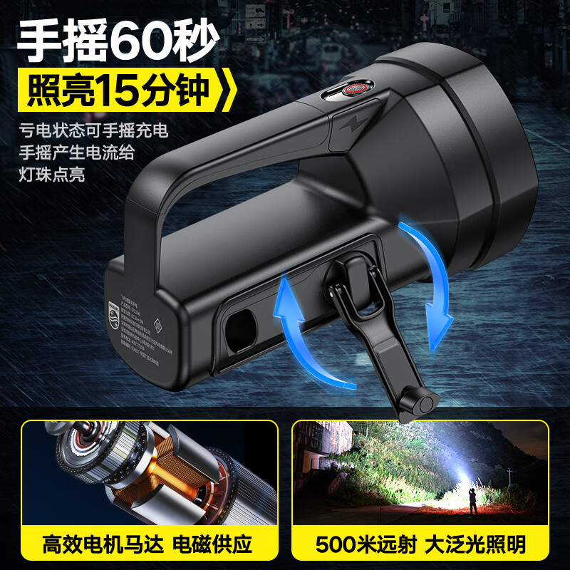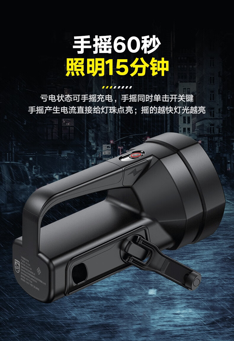 飞利浦(PHILIPS)手电筒强光手电知了超长续航手摇手提探照灯家用户外应急巡逻矿灯
