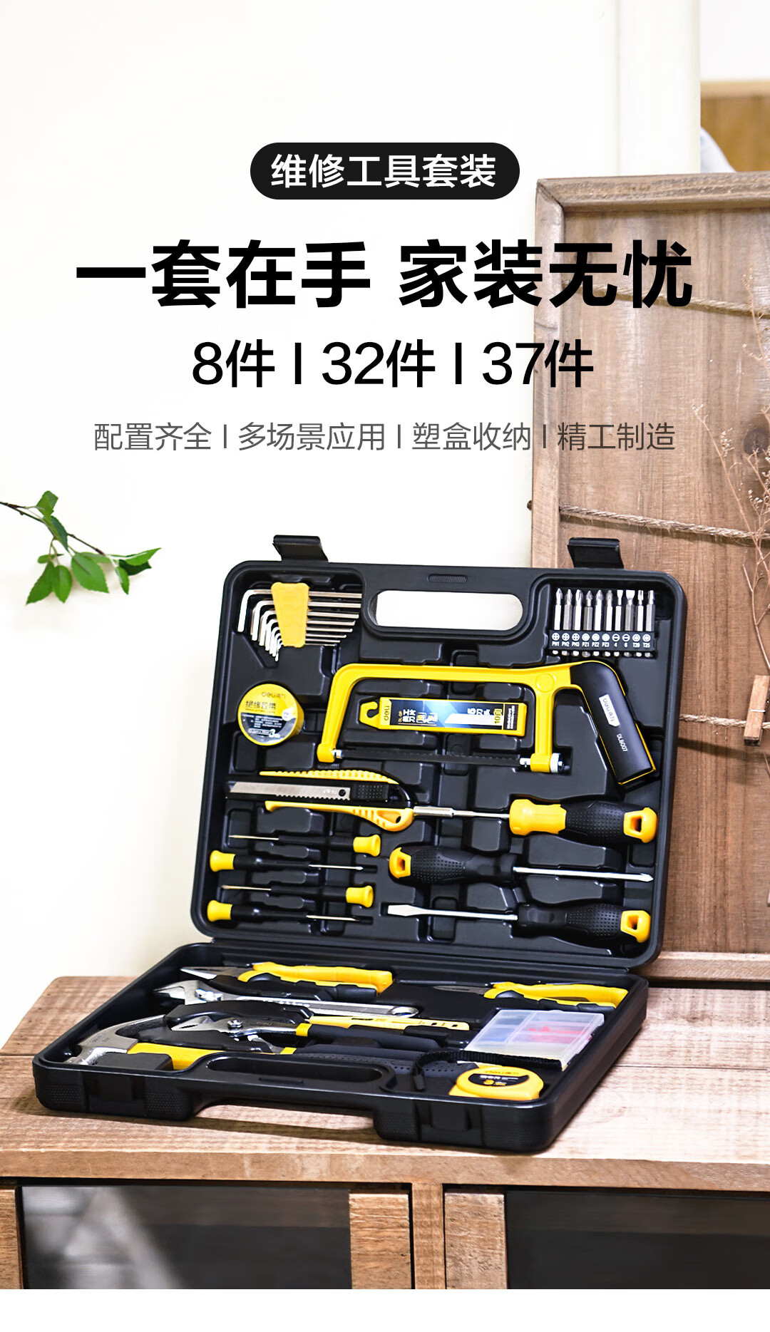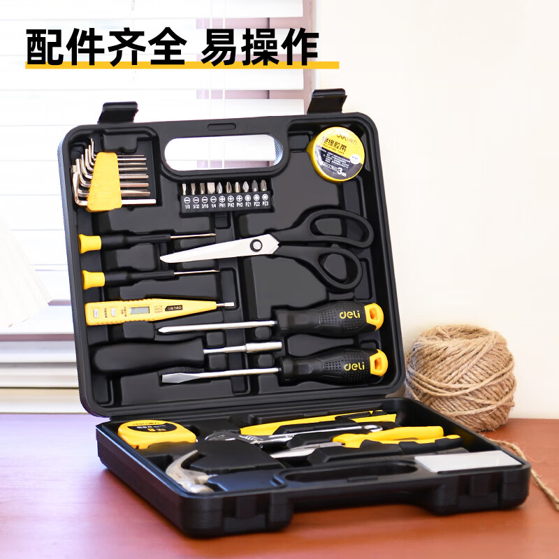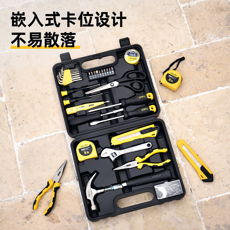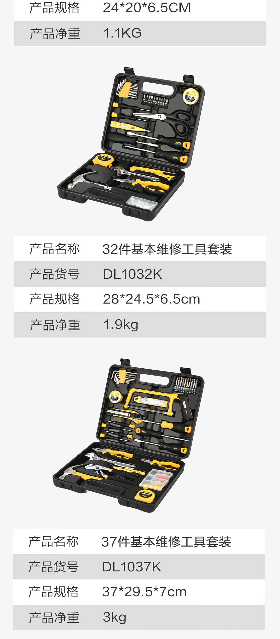 得力(deli)家用工具箱套装电工木工电讯维修组套五金手动工具套装32件套