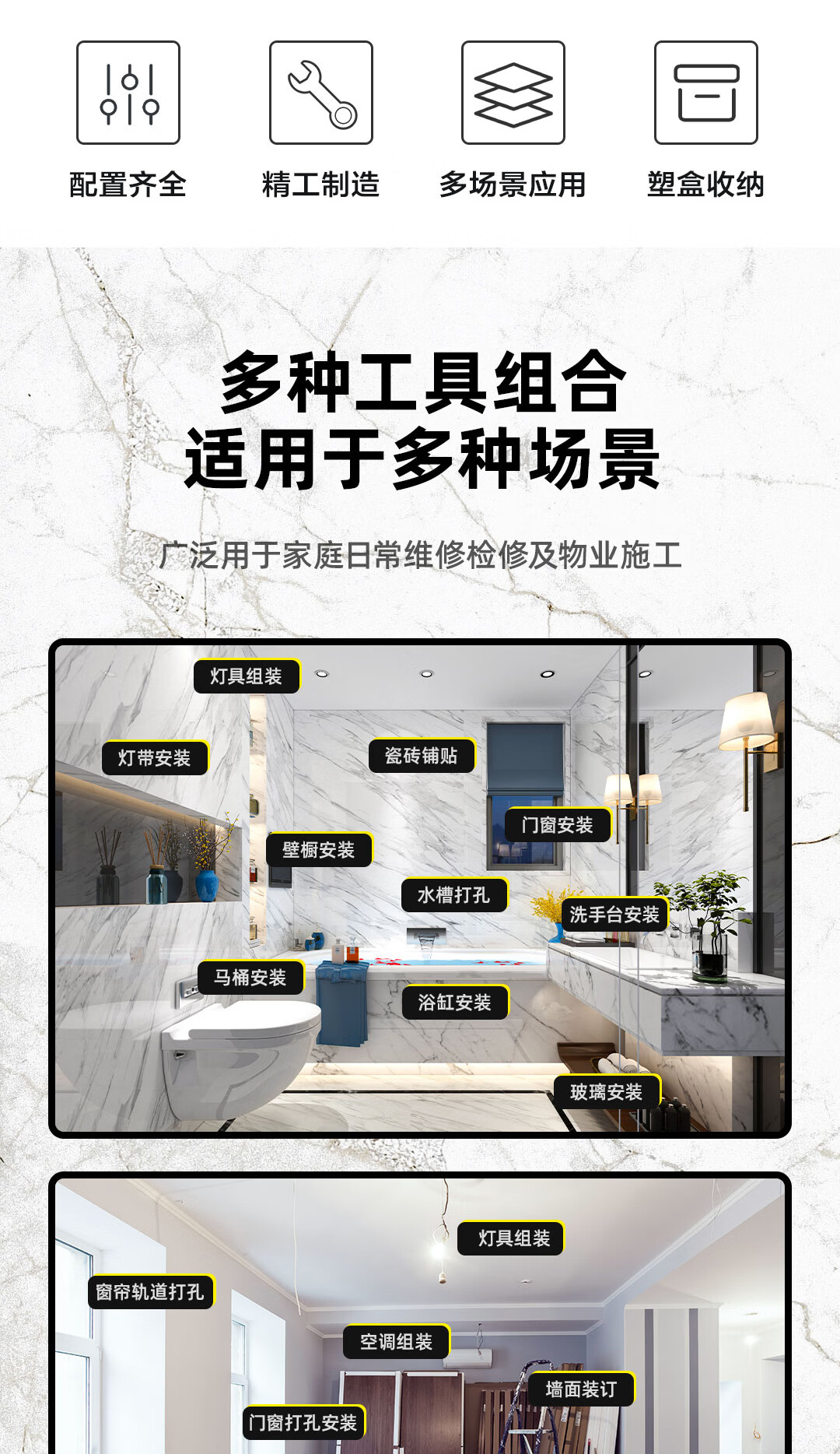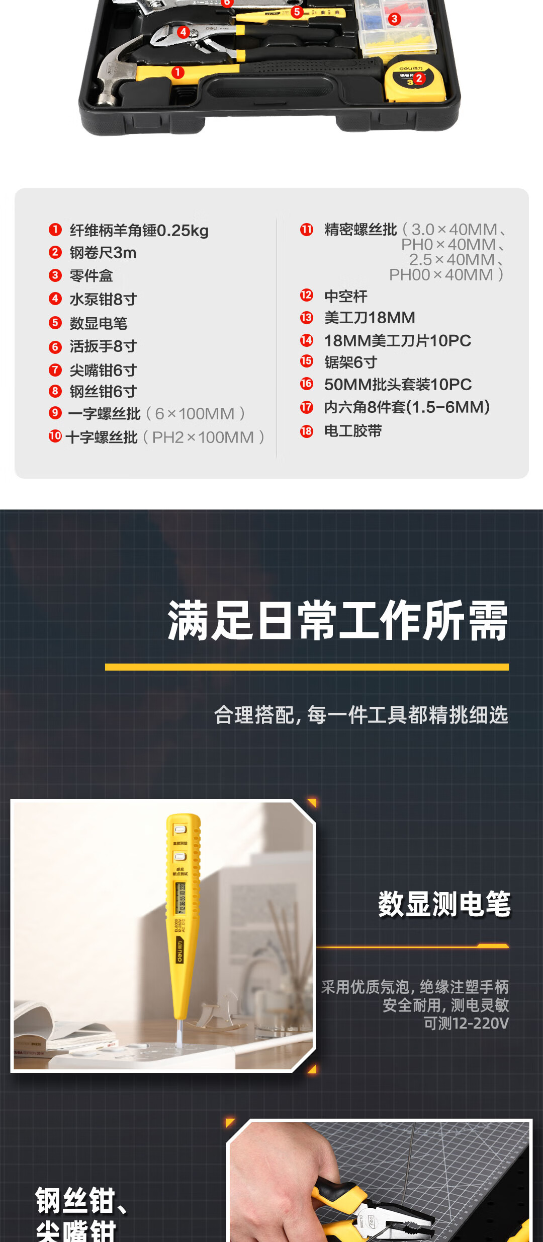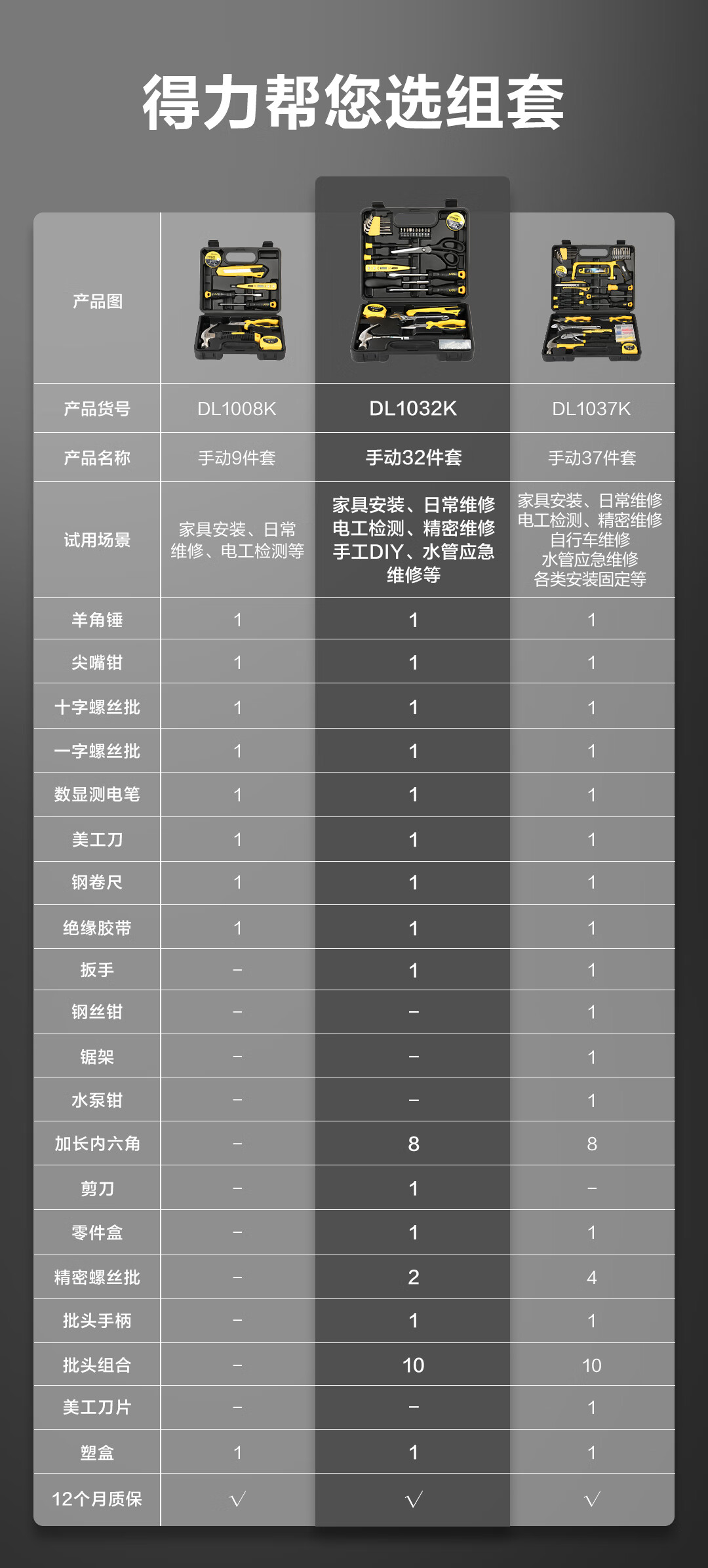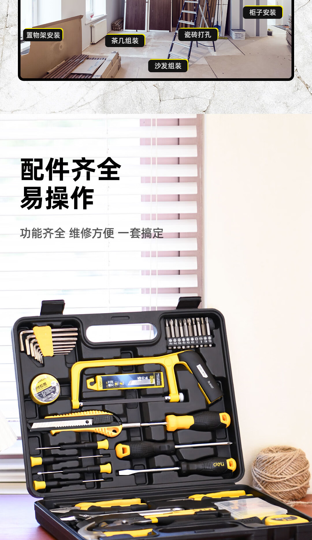 得力(deli)家用工具箱套装电工木工电讯维修组套五金手动工具套装32件套