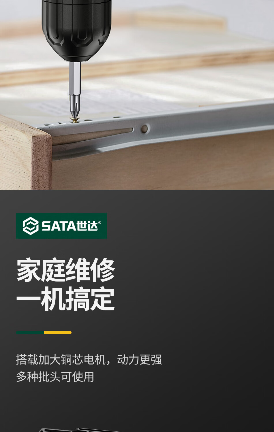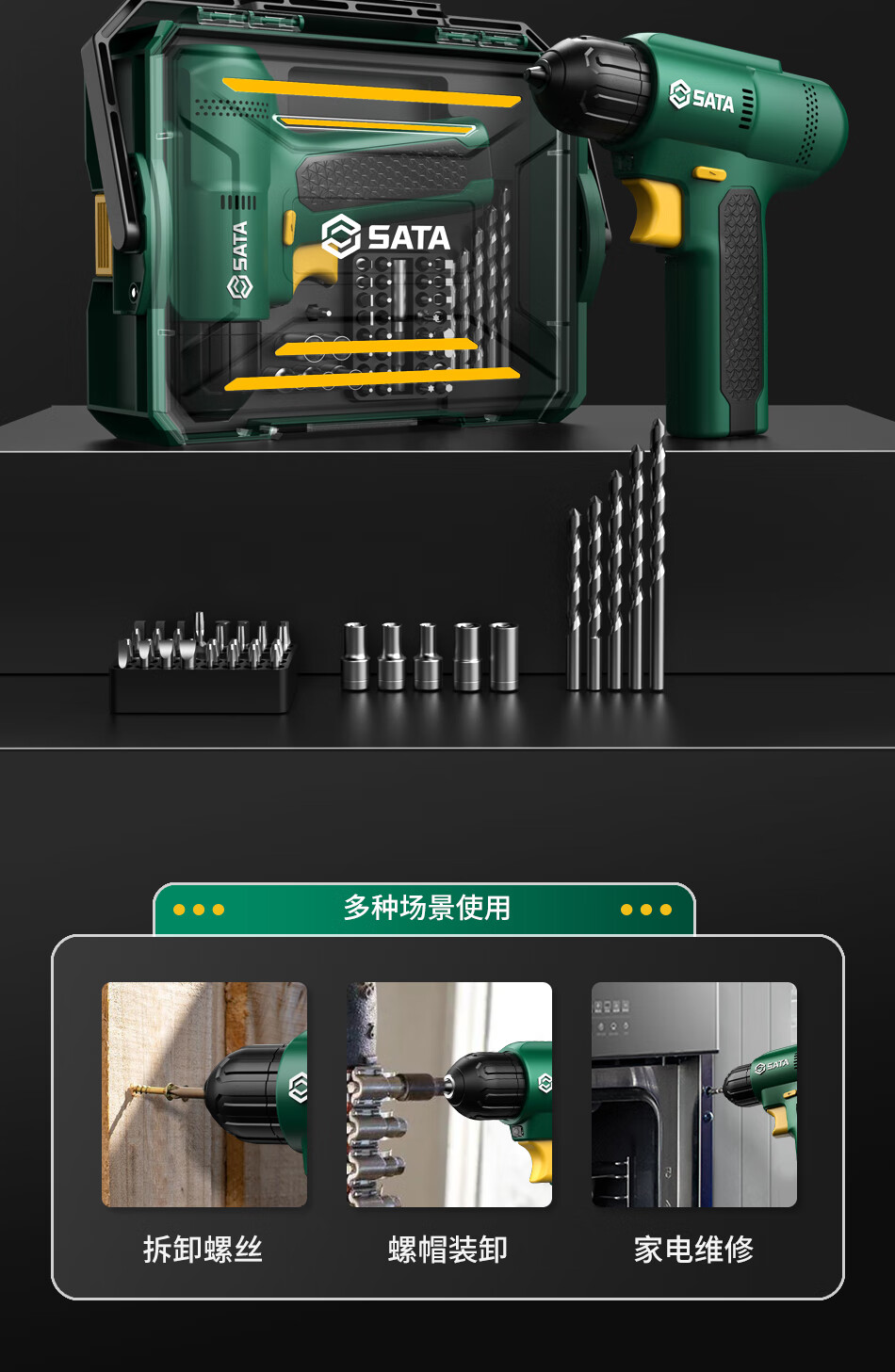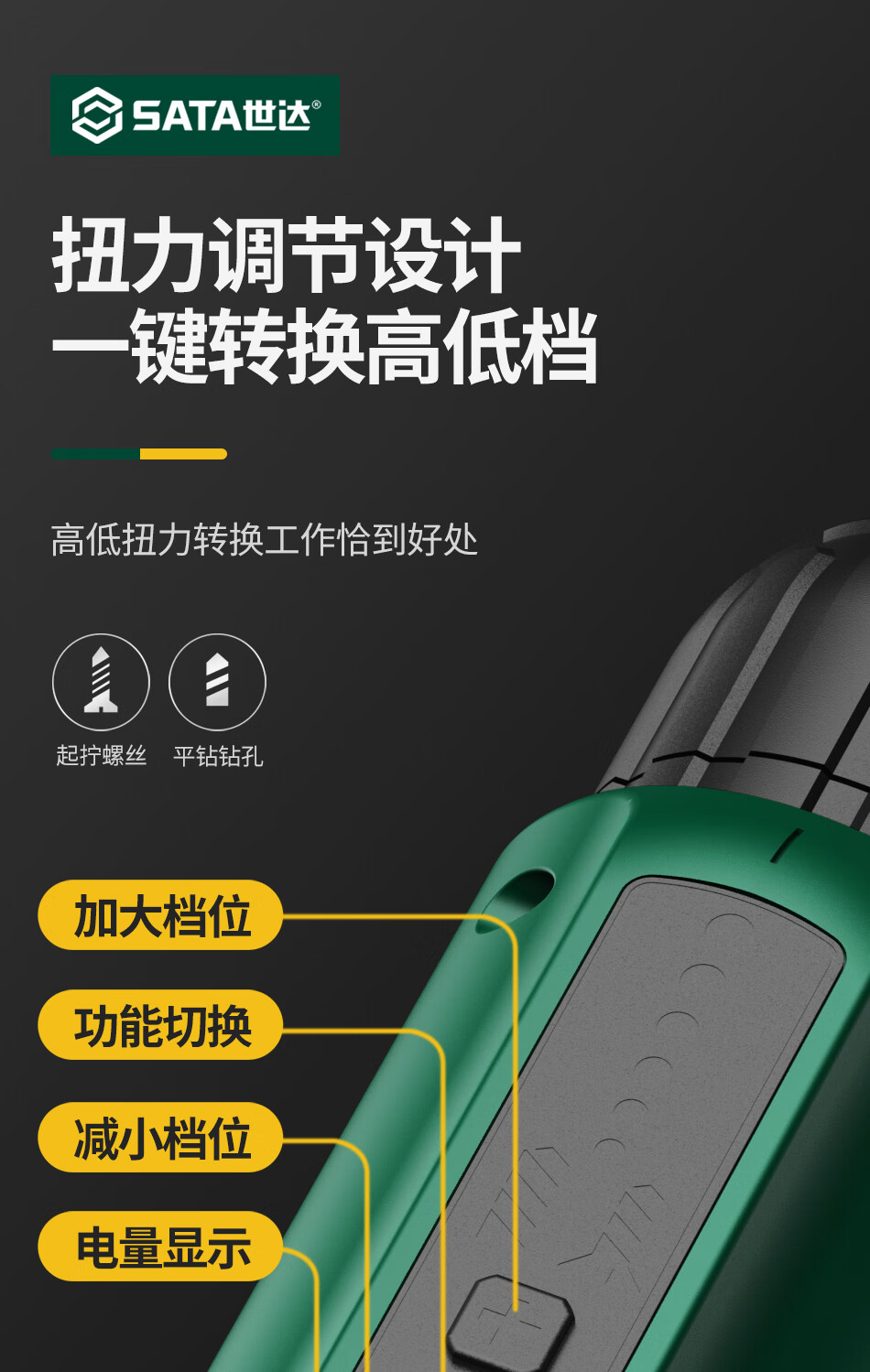 世达(SATA)锂电钻多功能充电式家用手电钻冲击钻电动螺丝刀D05739标配