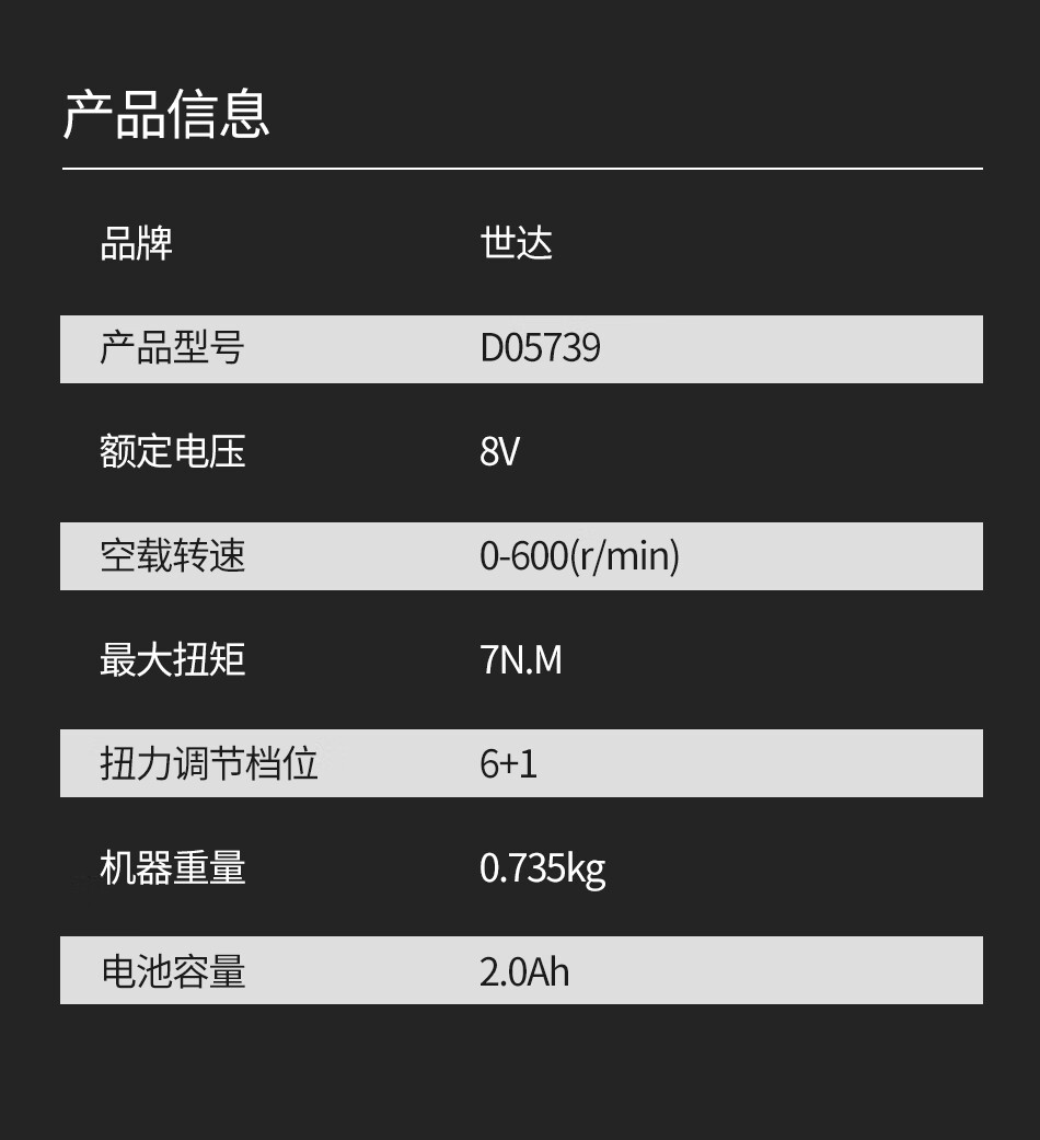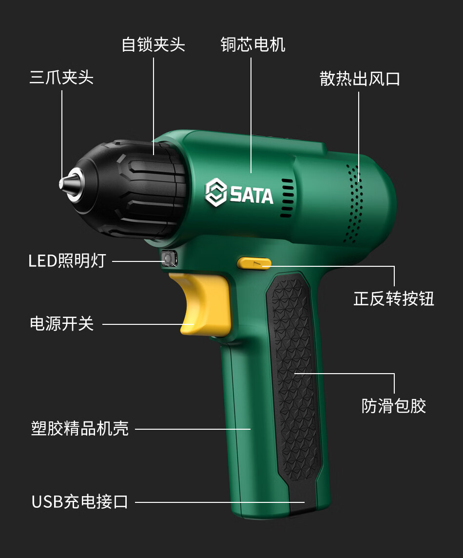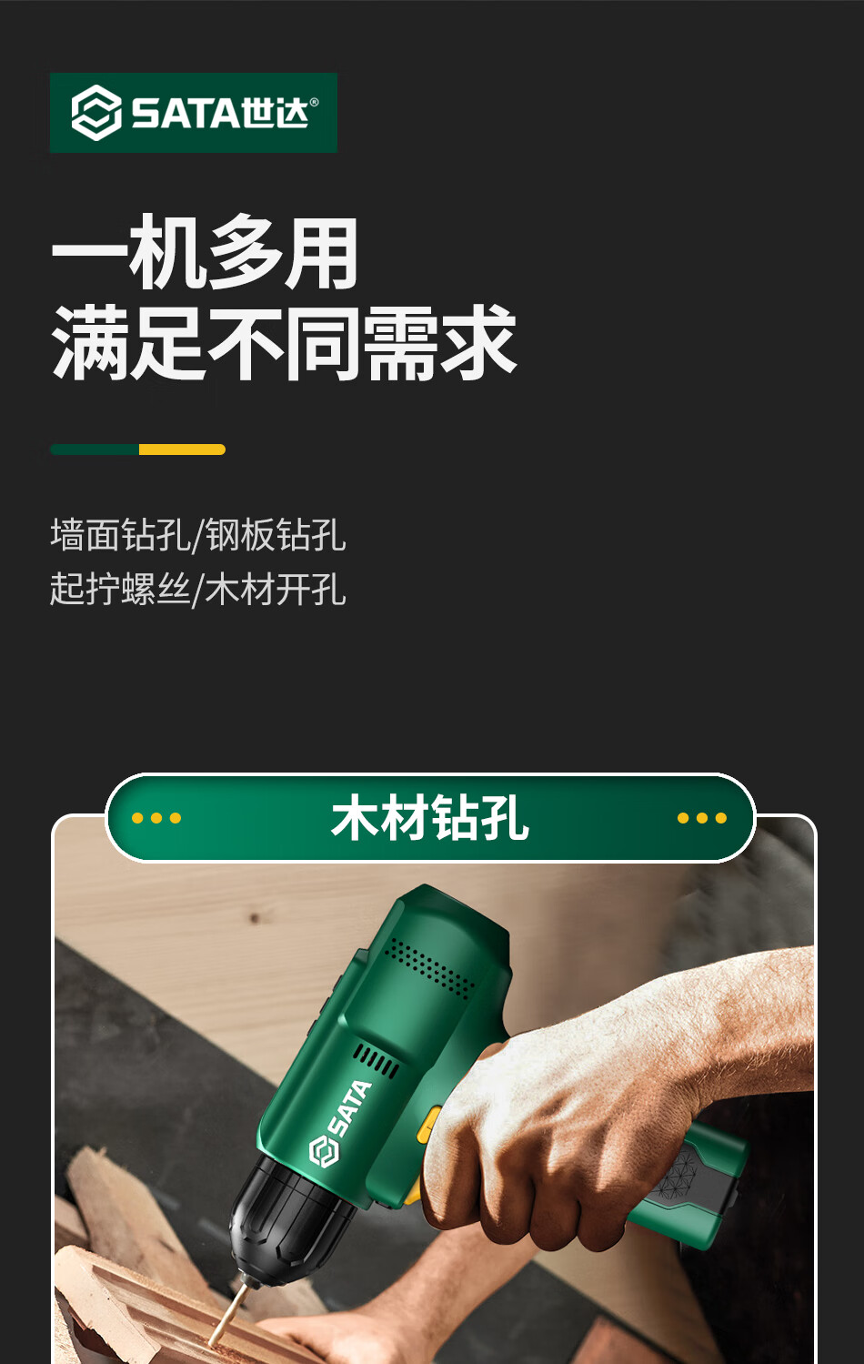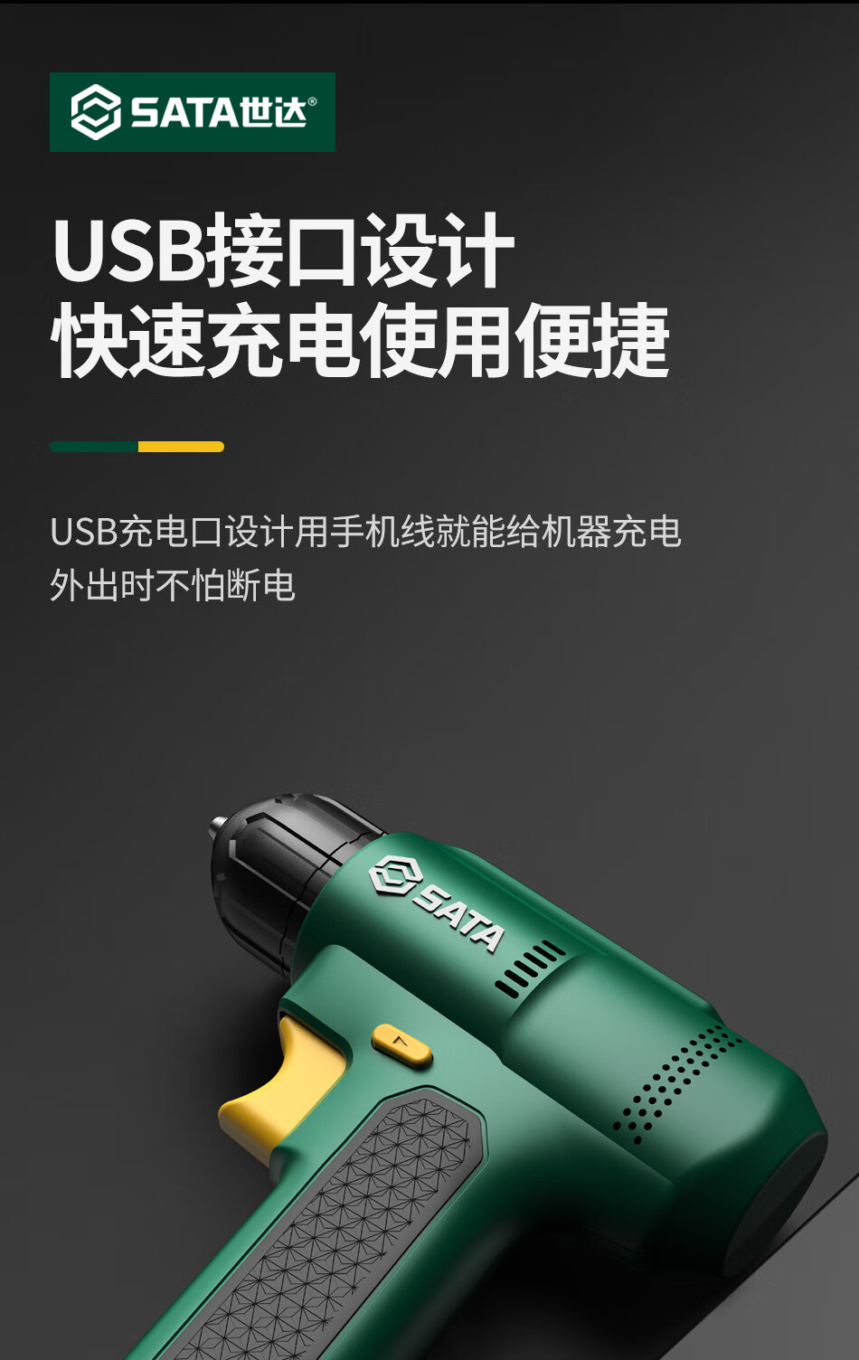 世达(SATA)锂电钻多功能充电式家用手电钻冲击钻电动螺丝刀D05739标配
