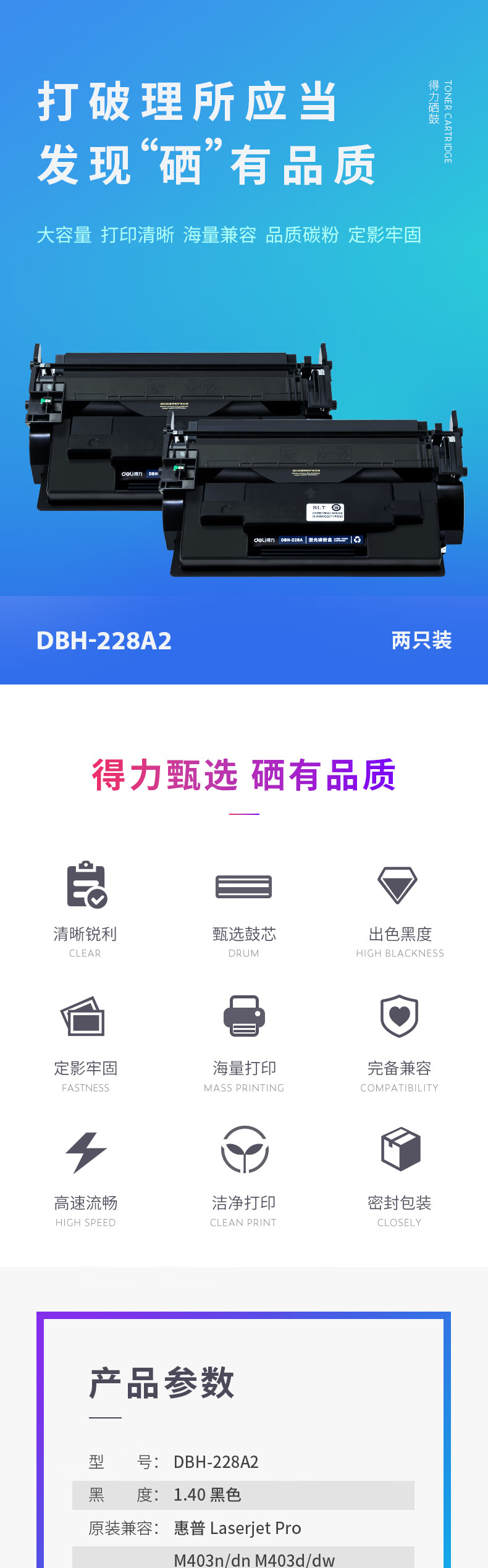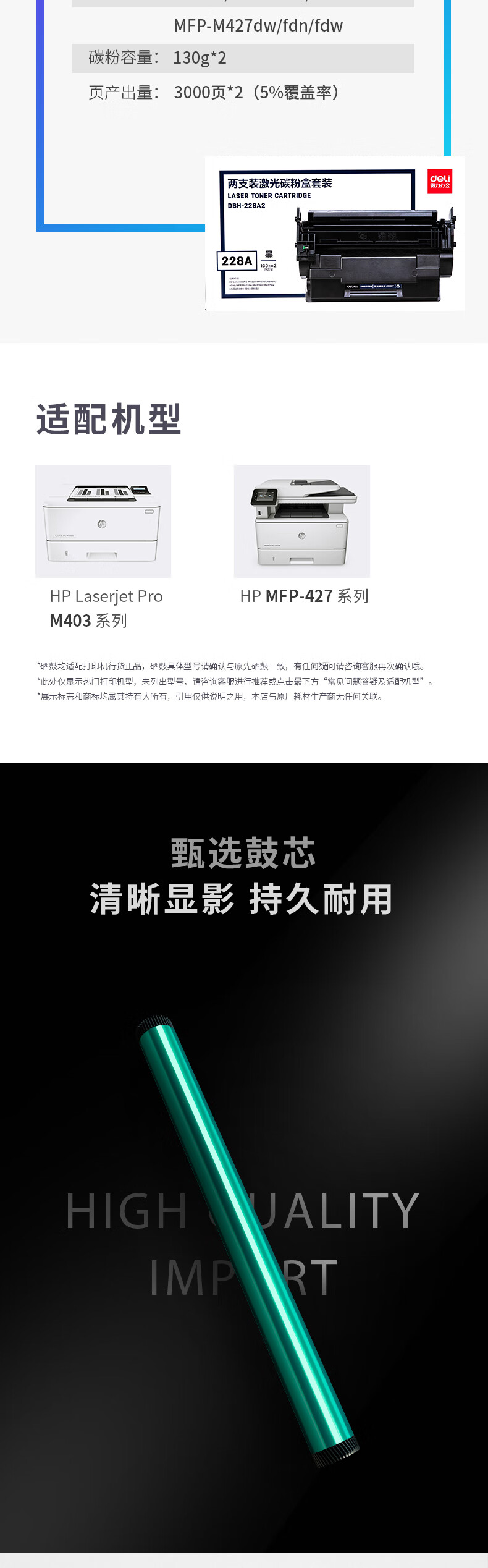 得力(deli)CF228A硒鼓双支装 28a大容量粉盒 适用惠普HP M403d M403dn M427dw/fdn/fdw M403n/dw 打印机墨盒