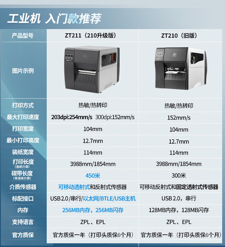 ZEBRA斑马ZT211工业级热敏标签条码打印机碳带不干胶价签二维码面单固定资产热转印ZT210升级款203dpi