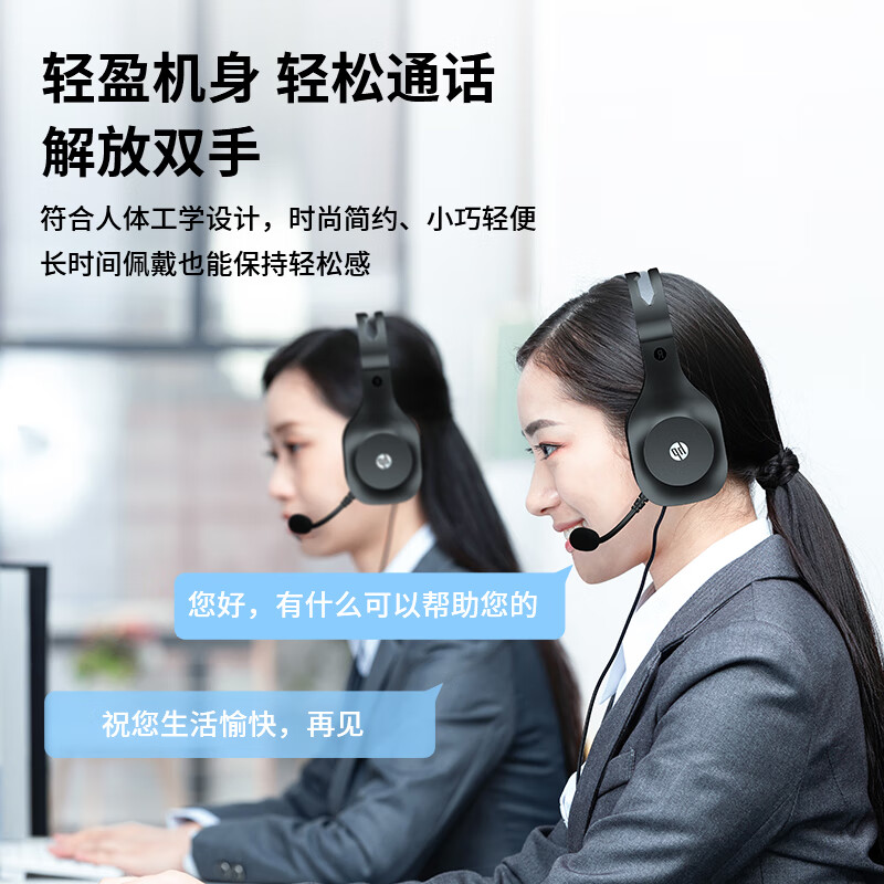 惠普(HP)PC100 Plus头戴式耳机 办公话务电话客服呼叫中心专用 游戏耳机带麦克风话筒 学生网课培训会议
