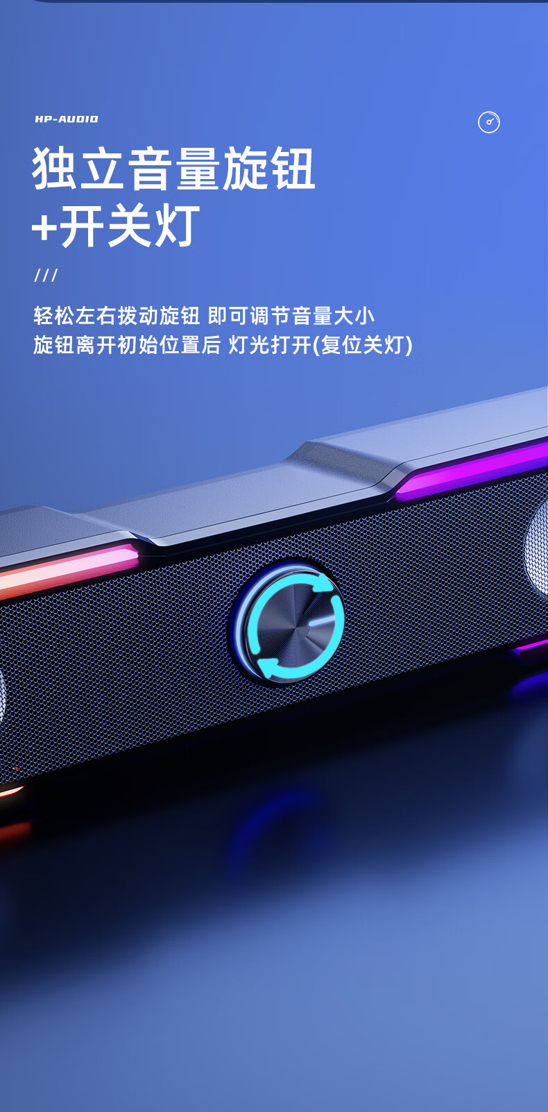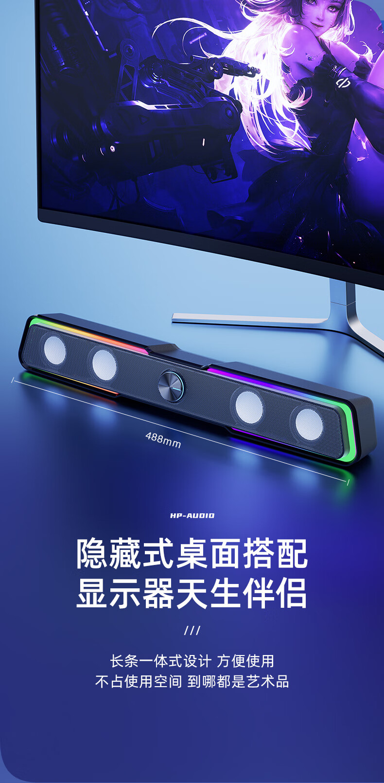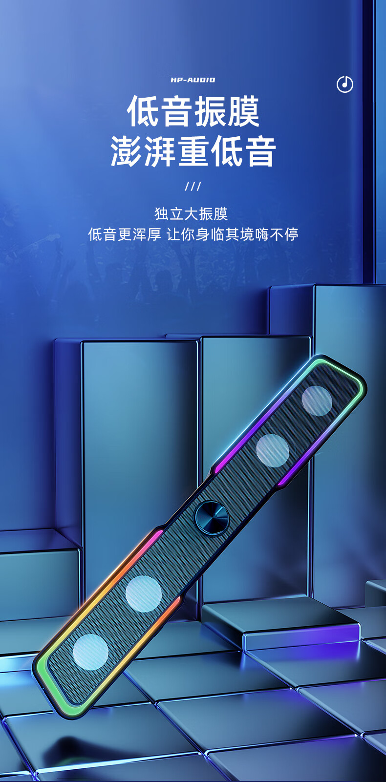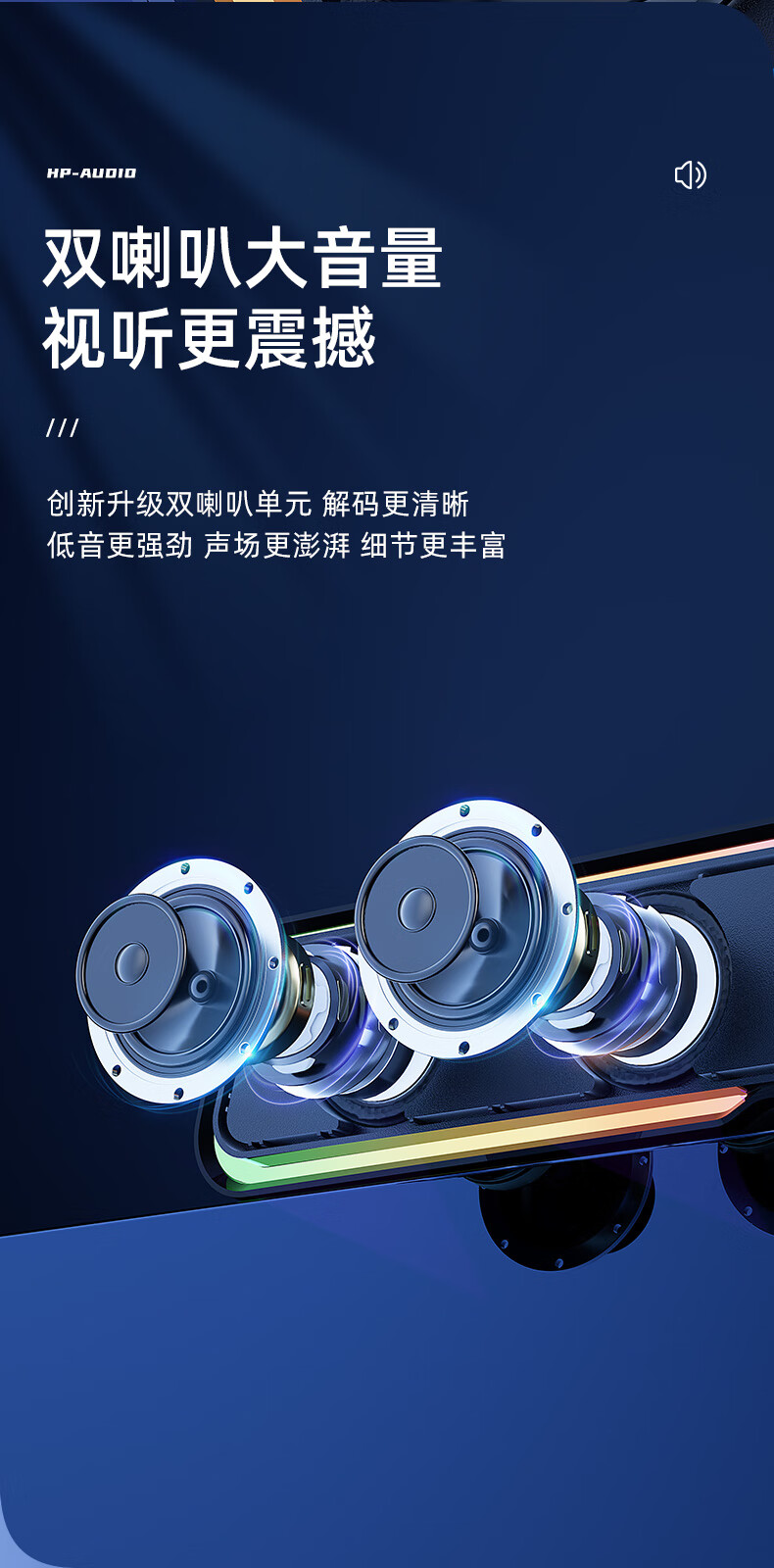 惠普(HP)DHE-6002电脑音响 家用台式机笔记本桌面有线长条低音炮游戏娱乐多媒体音箱