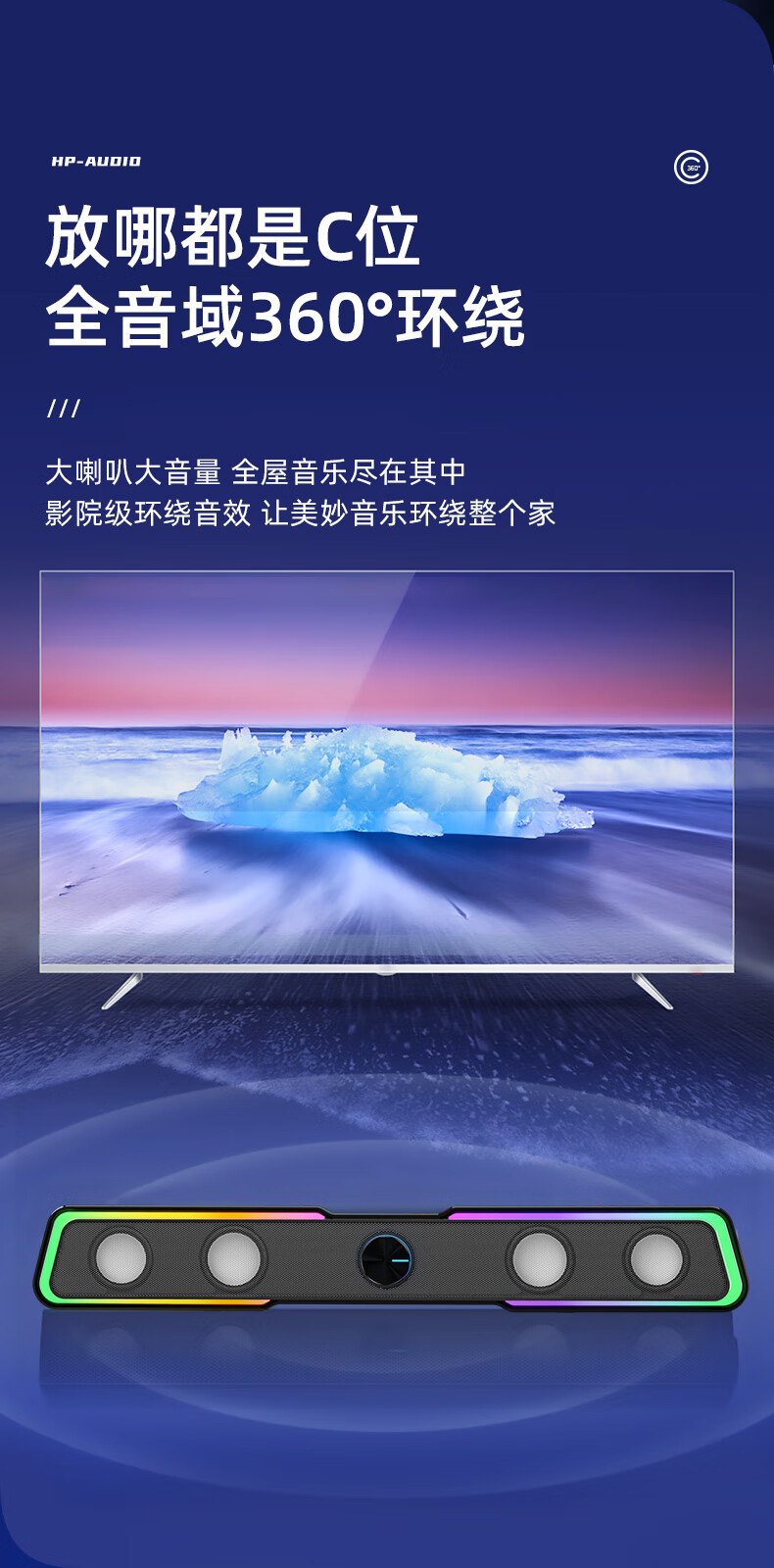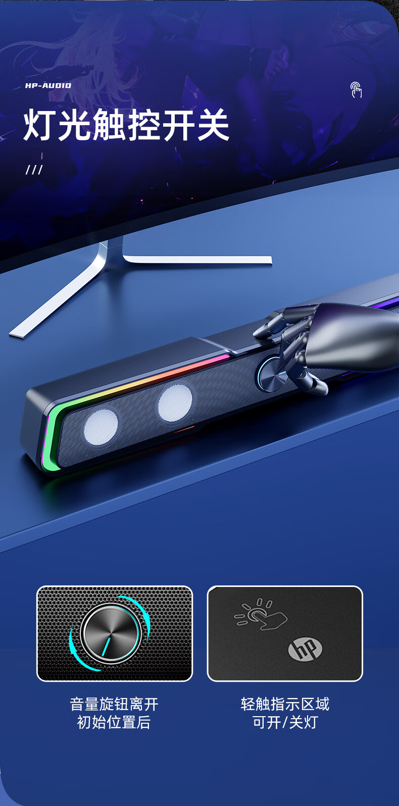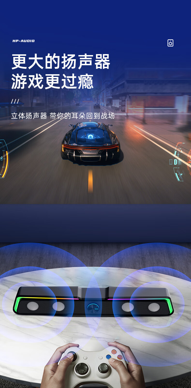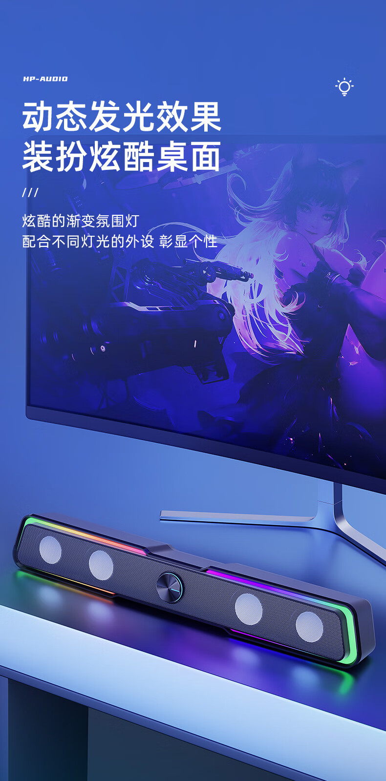 惠普(HP)DHE-6002电脑音响 家用台式机笔记本桌面有线长条低音炮游戏娱乐多媒体音箱