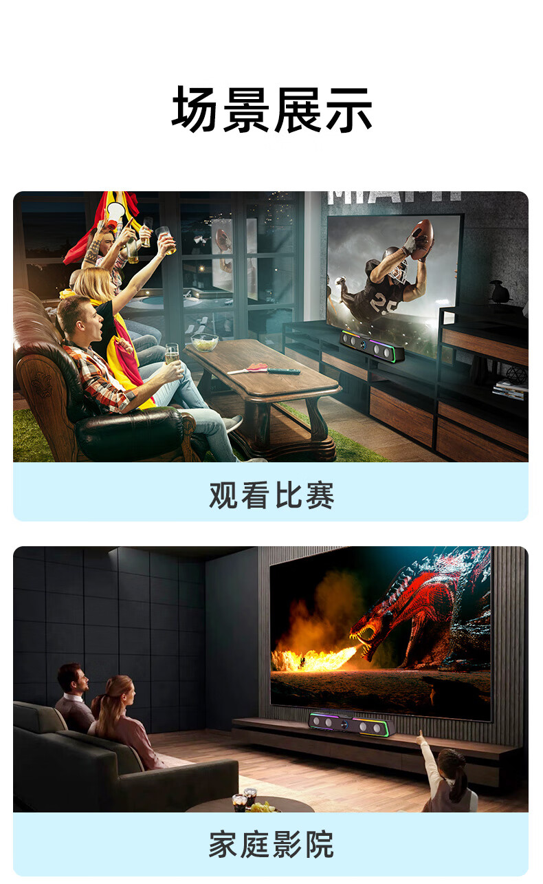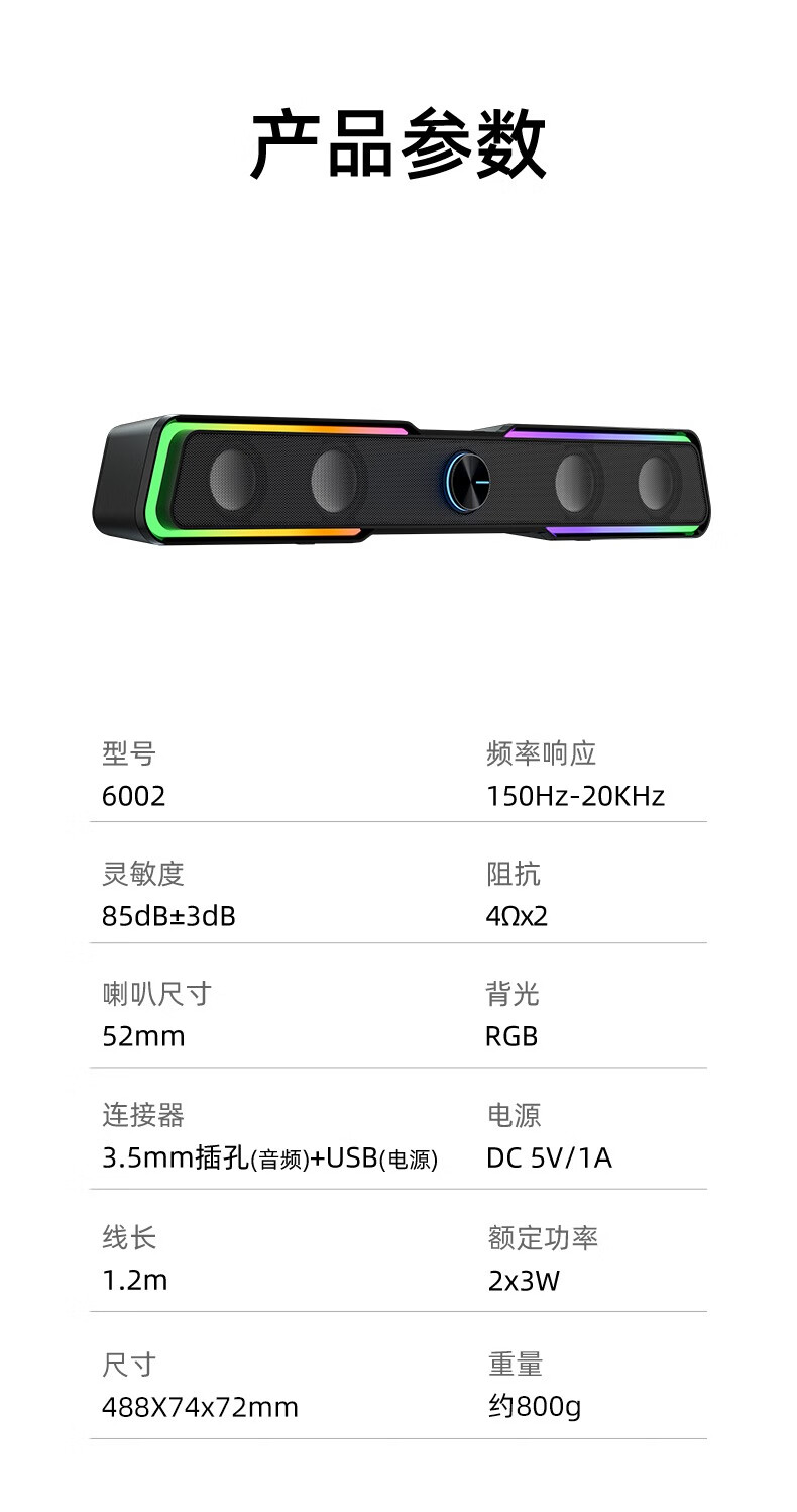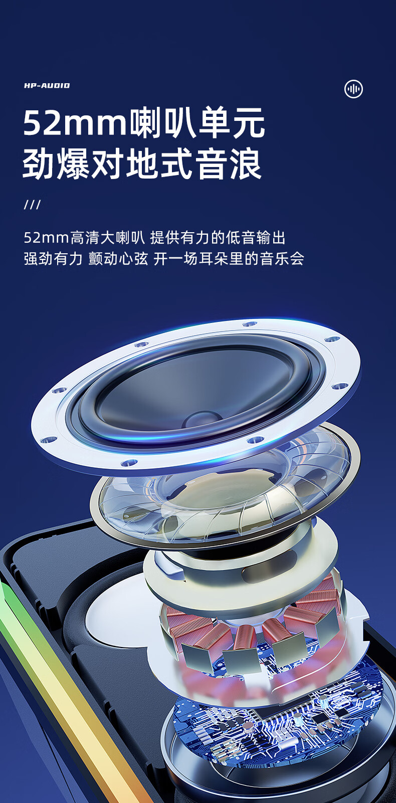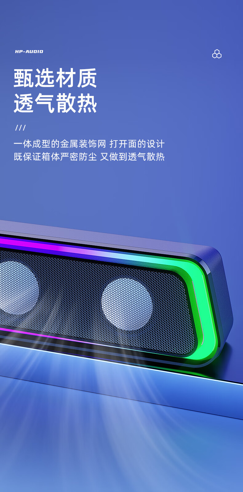 惠普(HP)DHE-6002电脑音响 家用台式机笔记本桌面有线长条低音炮游戏娱乐多媒体音箱