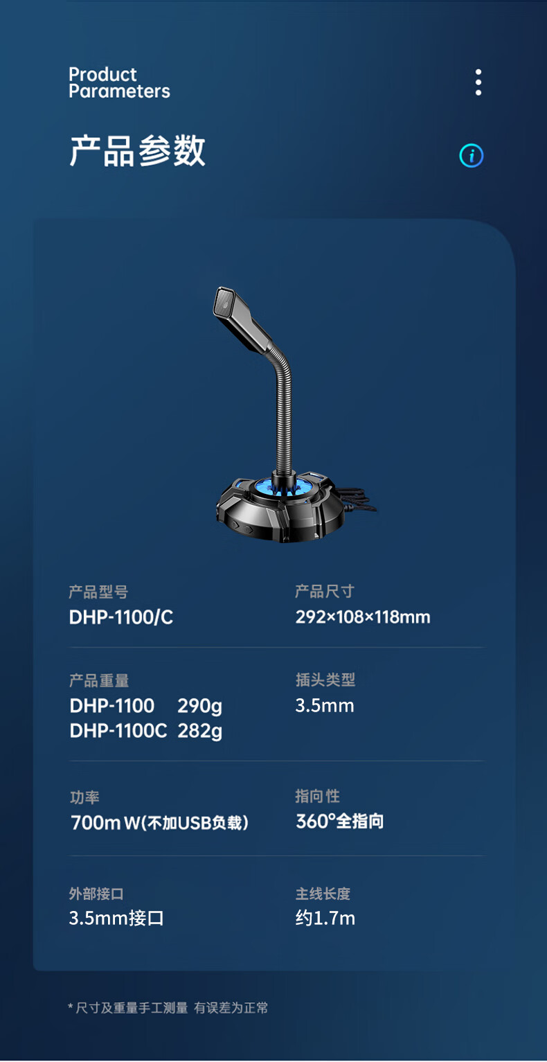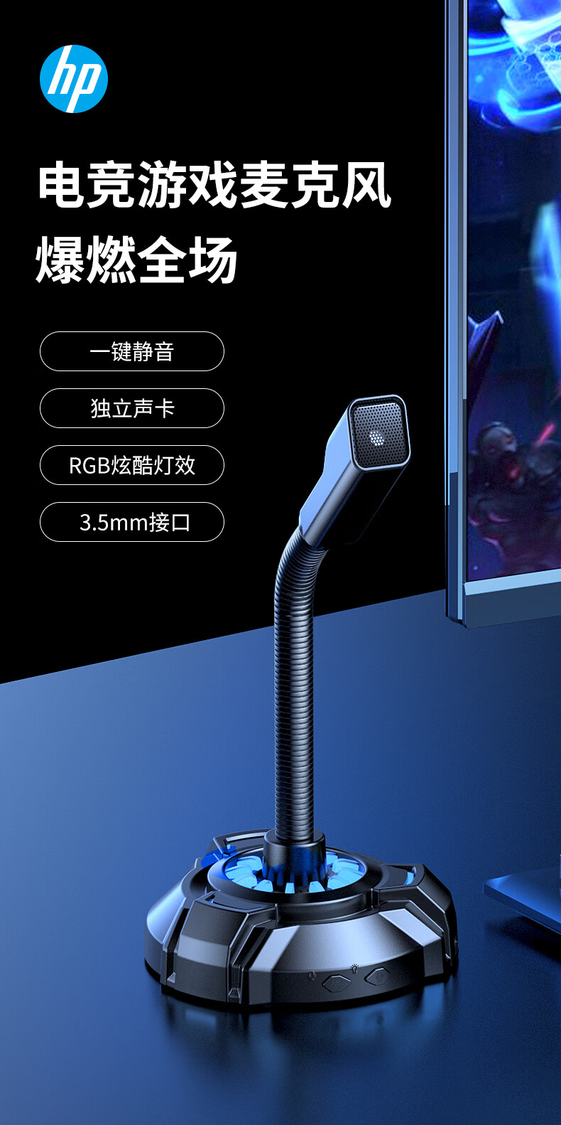 惠普(HP)DHP-1100C普通版 电脑麦克风话筒台式笔记本网课电竞游戏语音 桌面会议 电容 主播直播 吃鸡 3.5mm