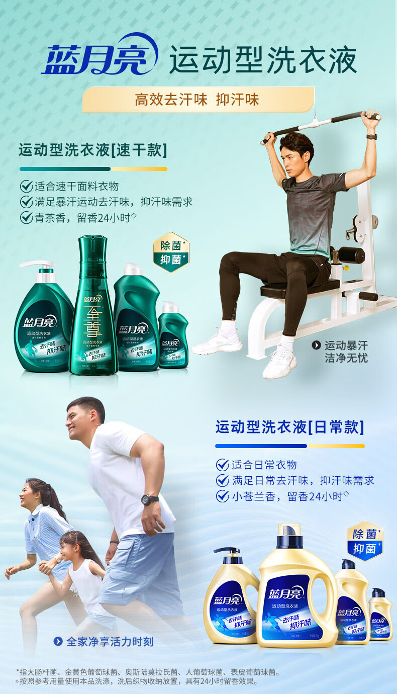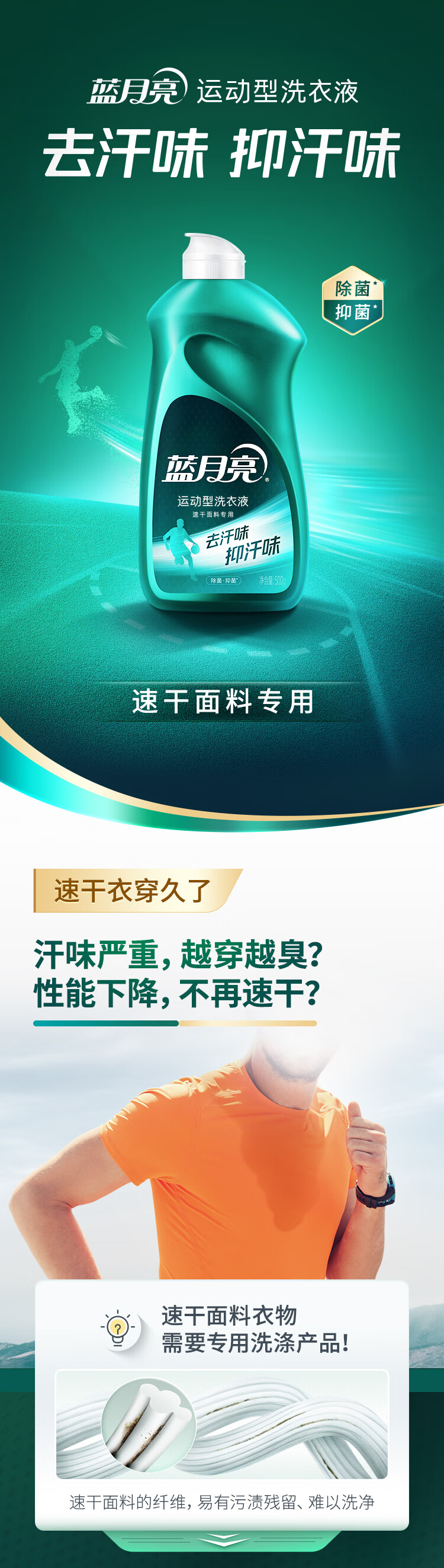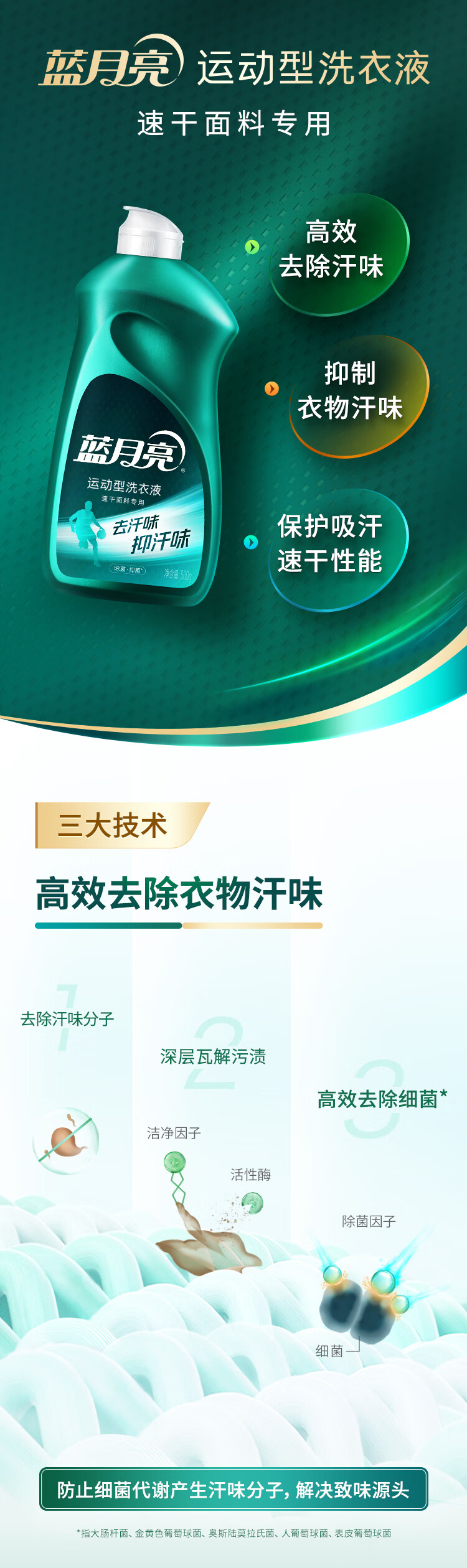 蓝月亮 运动型洗衣液 速干面料专用 保护衣物性能 去汗味 抑菌率99.9% 500g瓶(预涂设计)