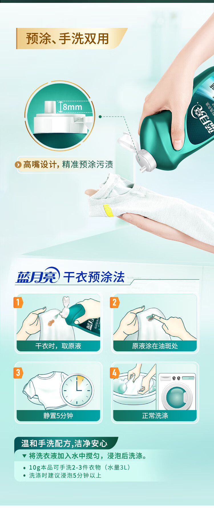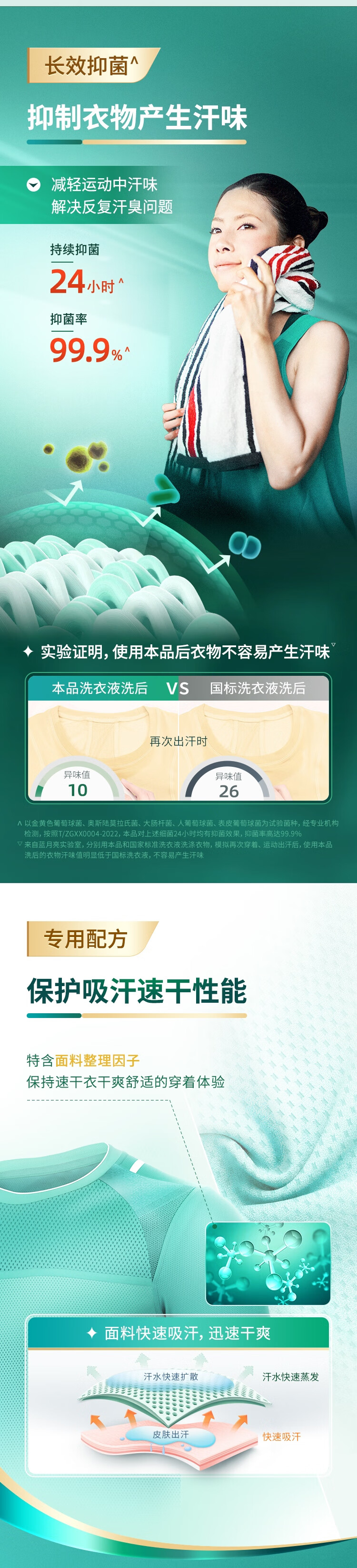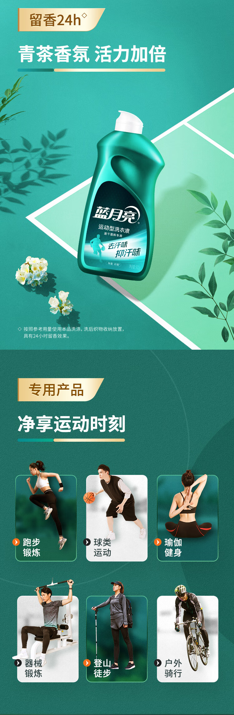 蓝月亮 运动型洗衣液 速干面料专用 保护衣物性能 去汗味 抑菌率99.9% 500g瓶(预涂设计)