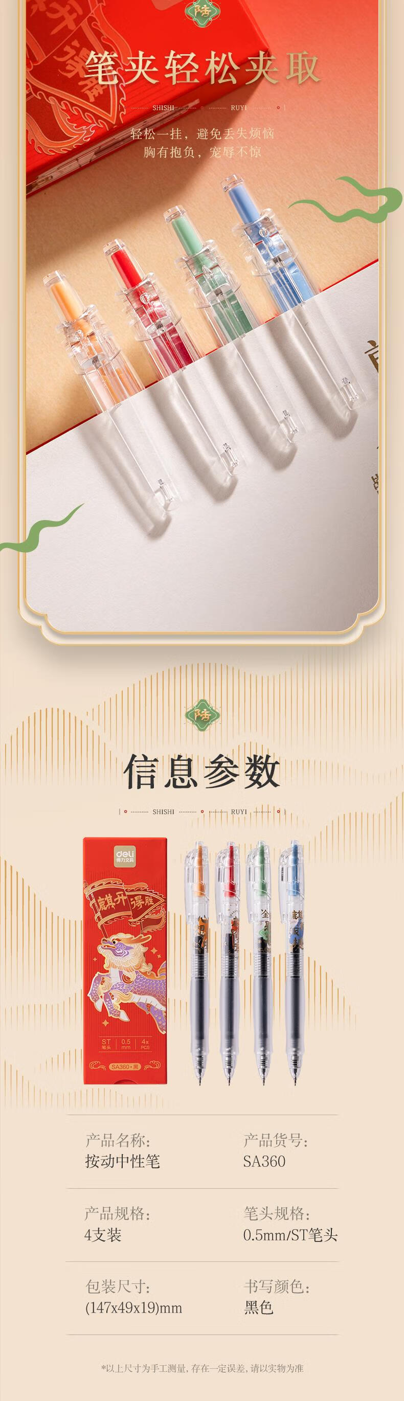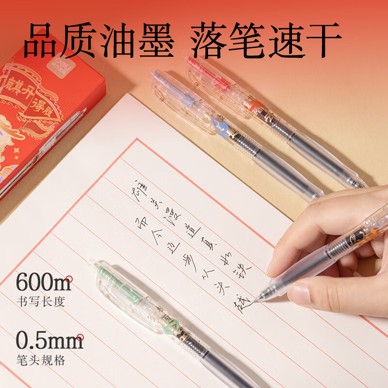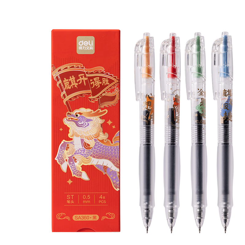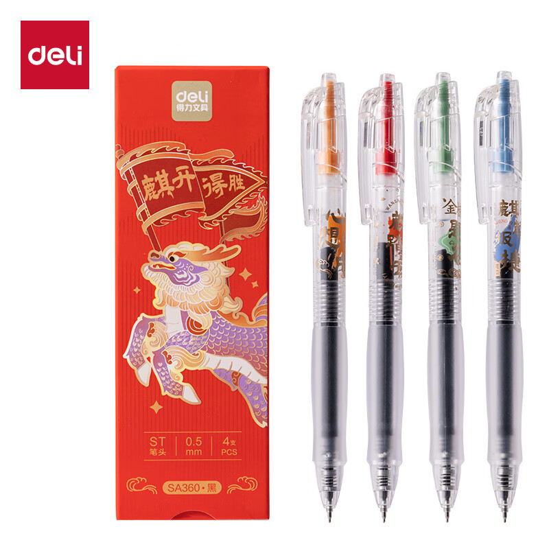 得力(deli)速干中性笔 0.5mmST头顺滑考试笔刷题笔学生中性笔 中高考可用 黑色4支/盒 SA360