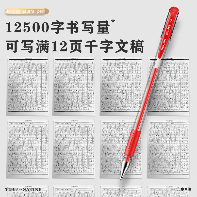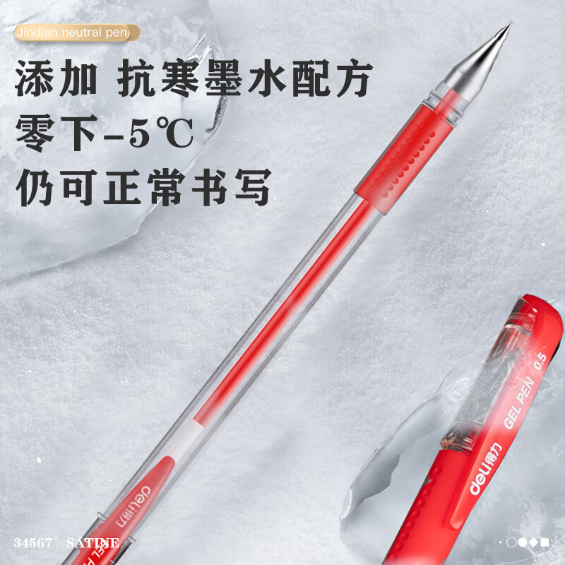得力(deli)经典办公拔帽中性笔 0.5mm子弹头水笔签字笔 红色12支/盒34567