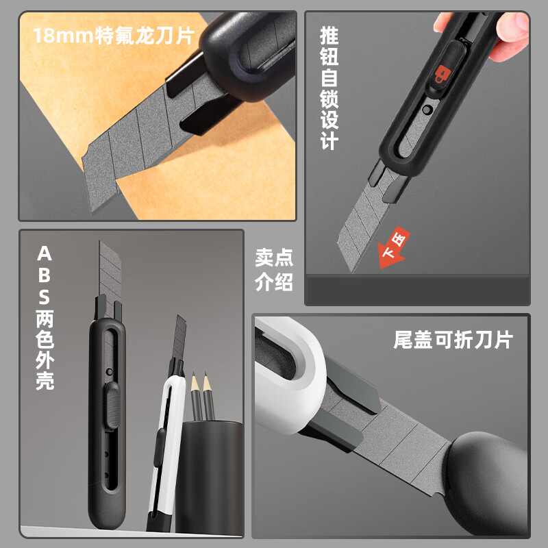 得力(deli)【超级爆款】大号特氟龙刀刃美工刀壁纸刀裁纸刀 防粘办公用品 黑色 TD501