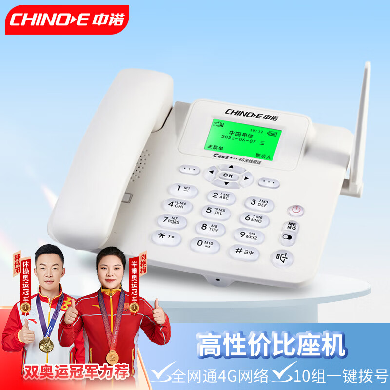 中诺全网通4G5G无线插卡固话电话座机电信移动联通广电4G网高清免提黑名单C265睿智版白色